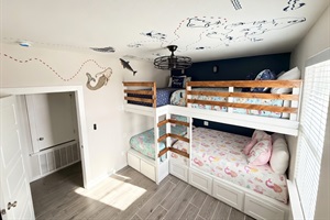 • Third bedroom (second floor): Twin over Twin + Queen over Queen Bunkbeds + TV